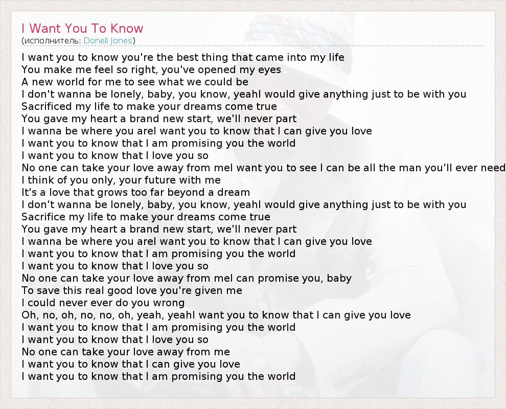 А как ты думаешь, о чем песня "I Want You To Know" ?