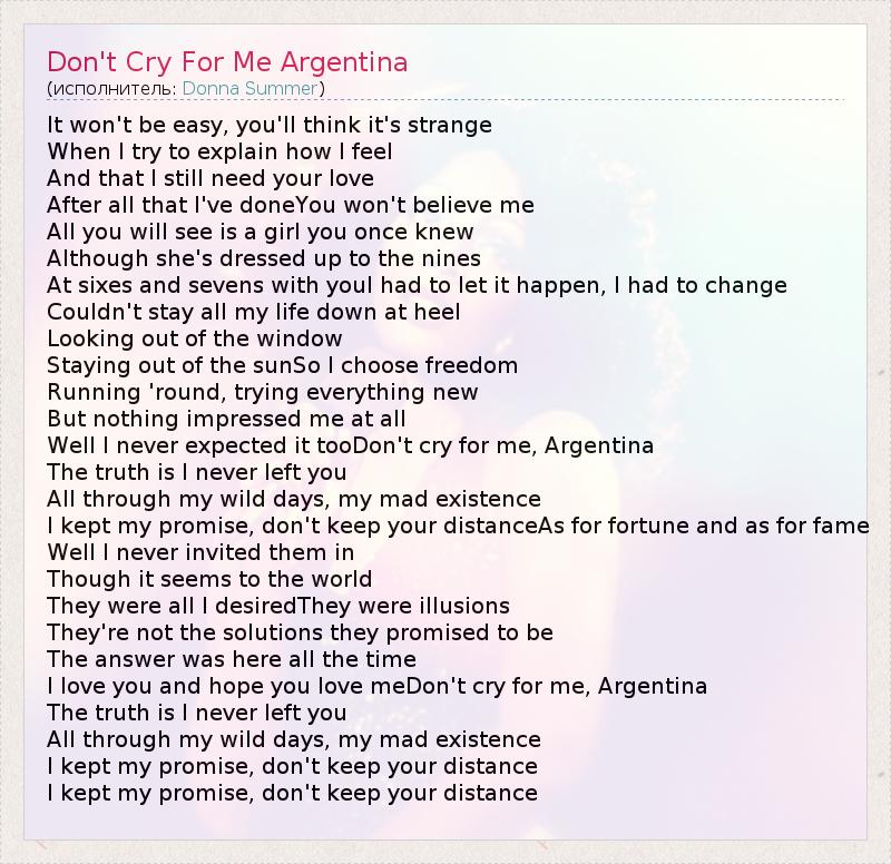 I love you and hope you love meDon't cry for me, Argentina