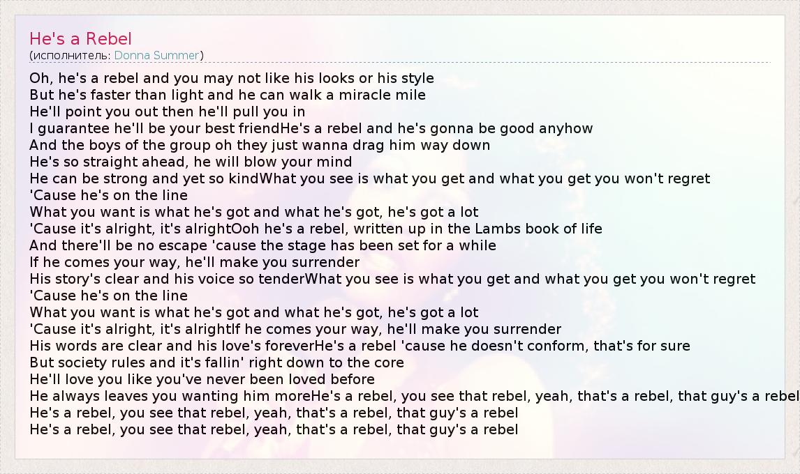А как ты думаешь, о чем песня "He's a Rebel" ?