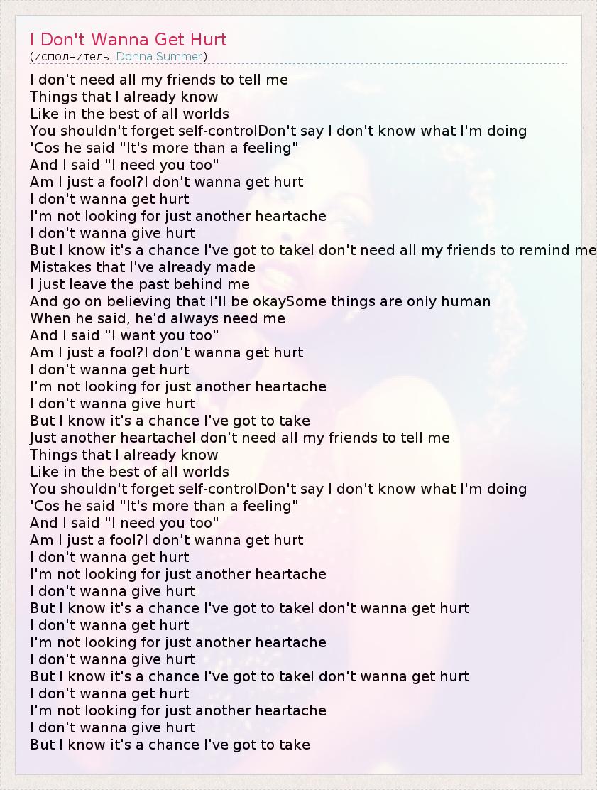 А как ты думаешь, о чем песня "I Don't Wanna Get Hurt" ?