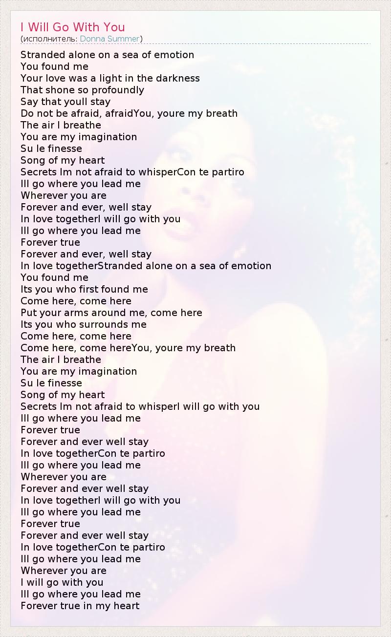 А как ты думаешь, о чем песня "I Will Go With You" ?