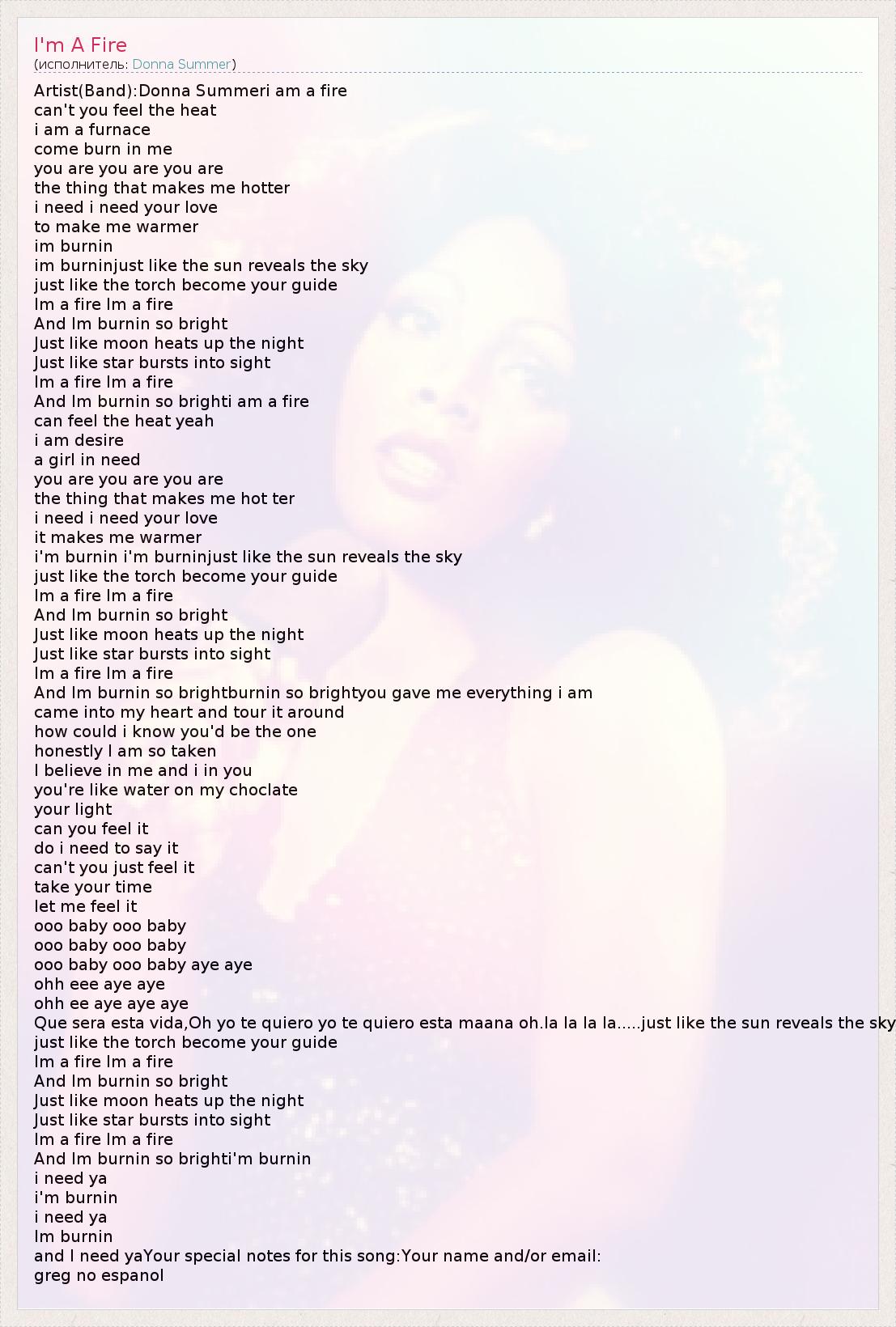 А как ты думаешь, о чем песня "I'm A Fire" ?