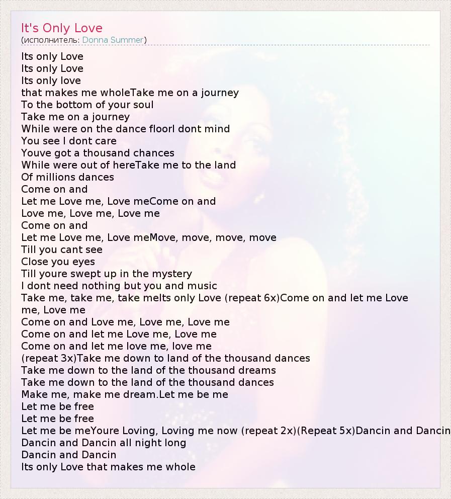 А как ты думаешь, о чем песня "It's Only Love" ?