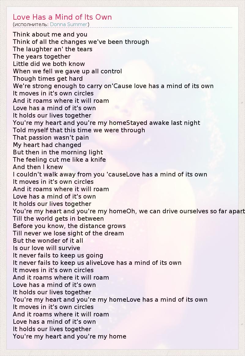 ГлавнаяИсполнителиDonna SummerLove Has a Mind of Its Own