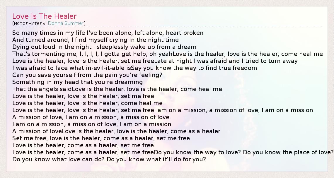 А как ты думаешь, о чем песня "Love Is The Healer" ?