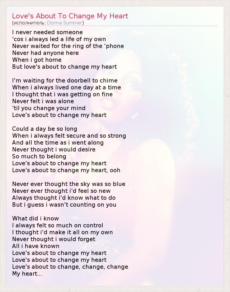 А как ты думаешь, о чем песня "Love's About To Change My Heart" ?