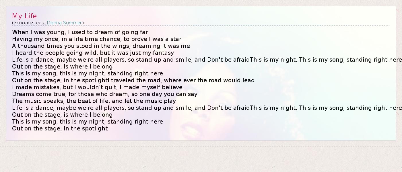 Life is a dance, maybe we're all players, so stand up and smile, and Don't be afraidThis is my night, This is my song, standing right here