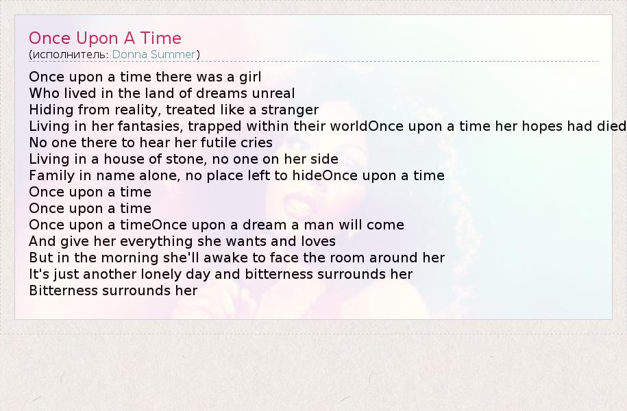 А как ты думаешь, о чем песня "Once Upon A Time" ?