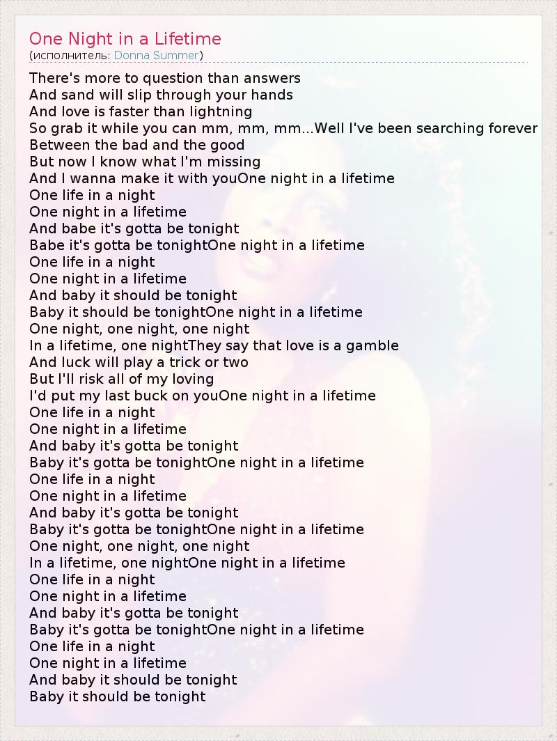 А как ты думаешь, о чем песня "One Night in a Lifetime" ?