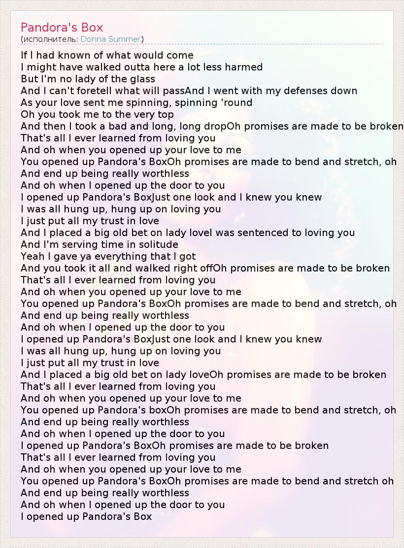 А как ты думаешь, о чем песня "Pandora's Box" ?