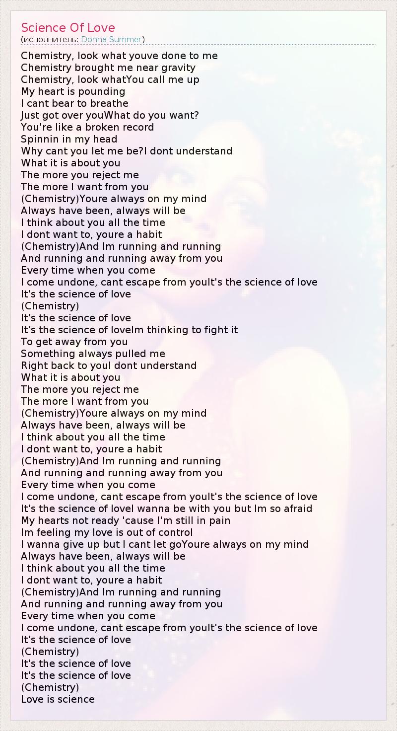 А как ты думаешь, о чем песня "Science Of Love" ?