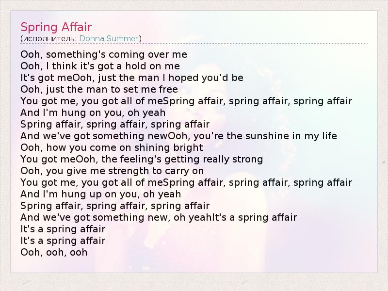 А как ты думаешь, о чем песня "Spring Affair" ?