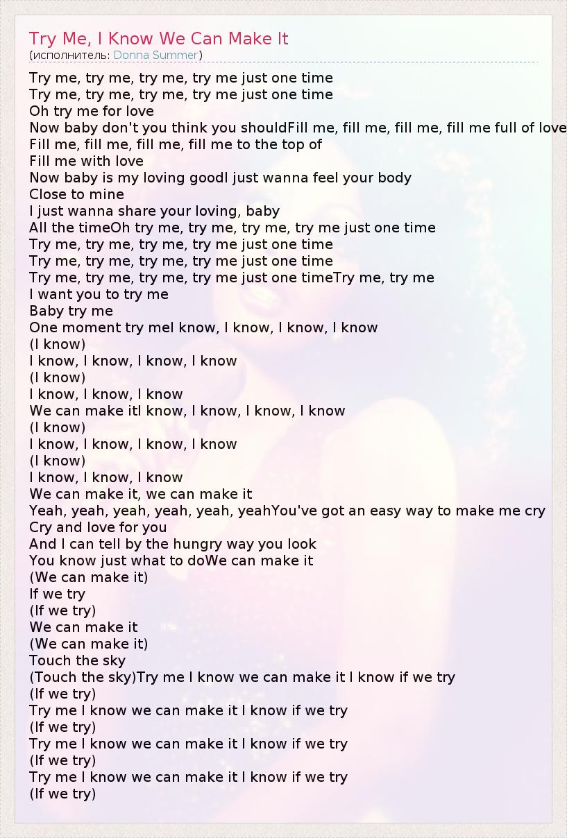 ГлавнаяИсполнителиDonna SummerTry Me, I Know We Can Make It