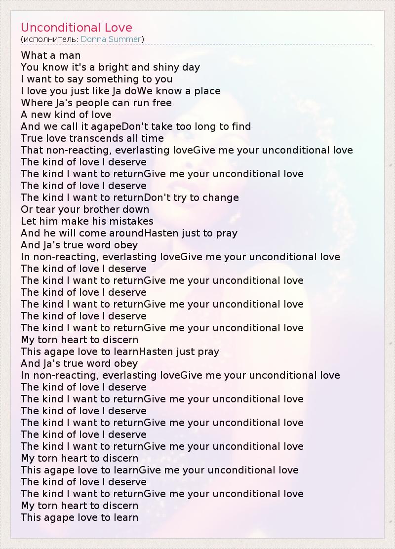 А как ты думаешь, о чем песня "Unconditional Love" ?