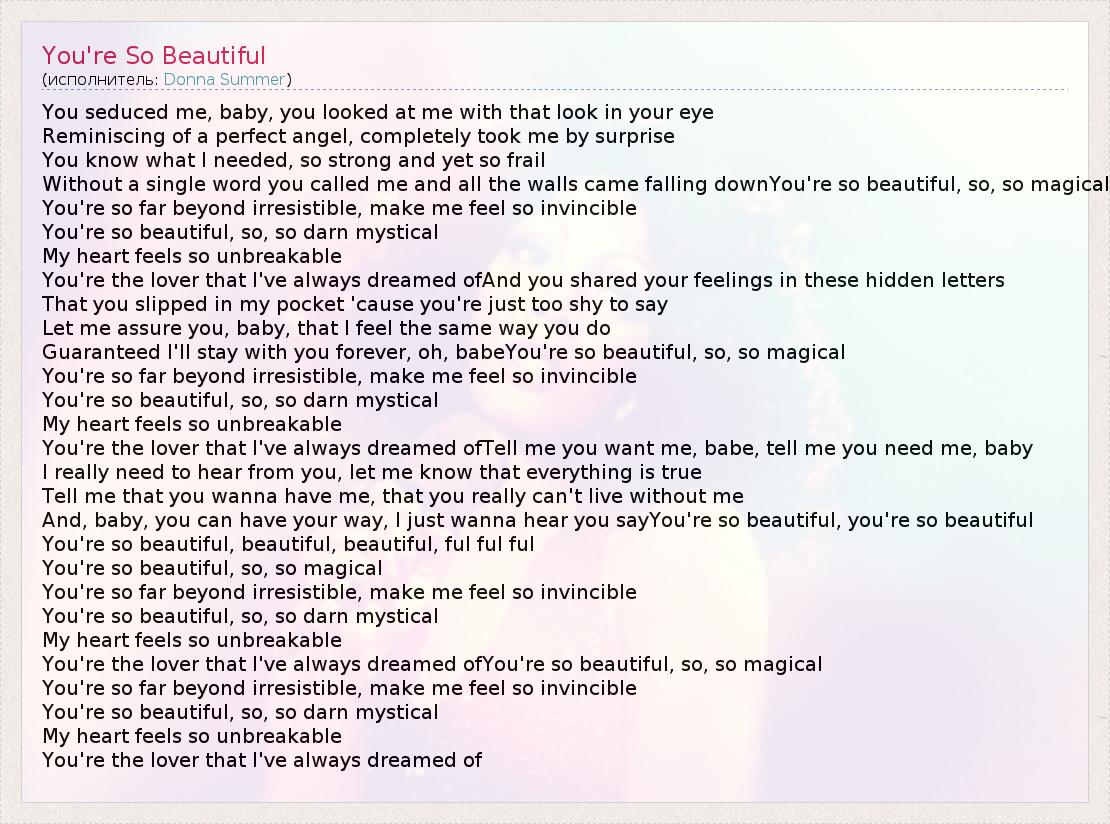 А как ты думаешь, о чем песня "You're So Beautiful" ?