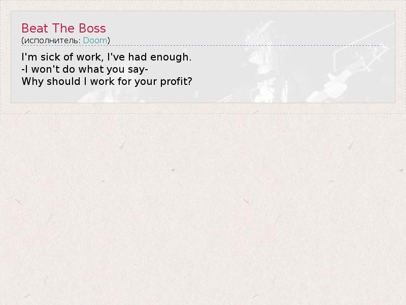 А как ты думаешь, о чем песня "Beat The Boss" ?