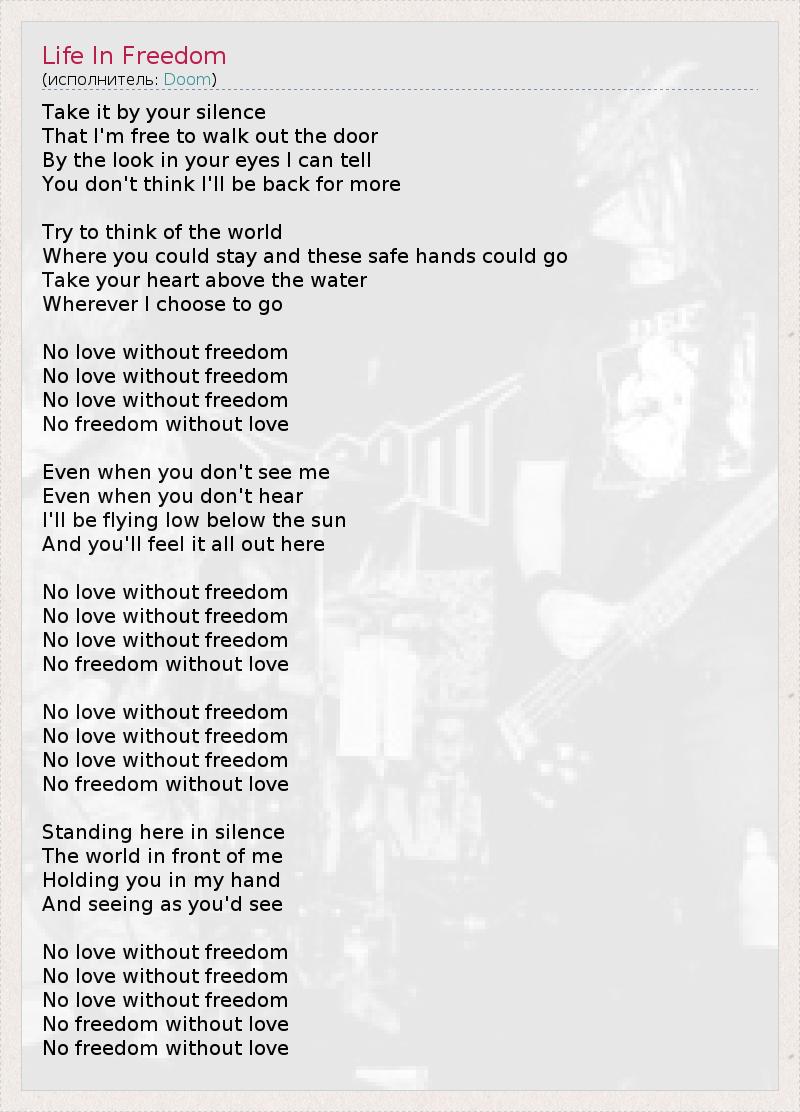 Без свободы нет любви,