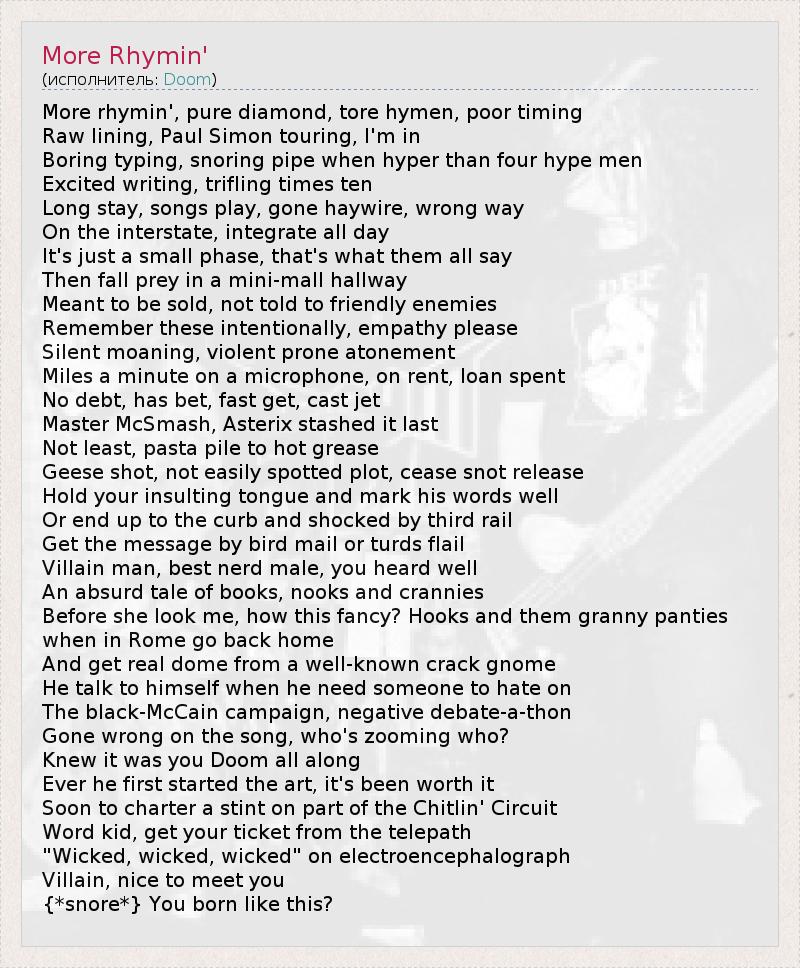 А как ты думаешь, о чем песня "More Rhymin'" ?
