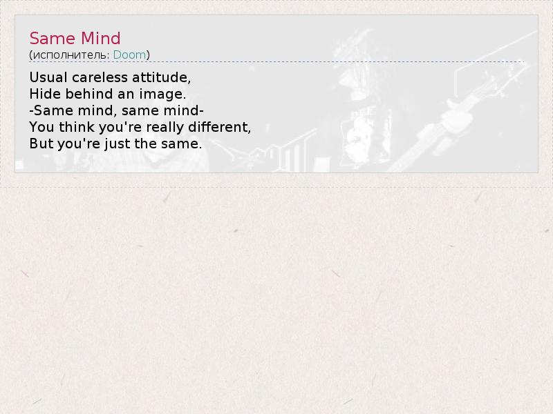 Это интересно:1) Doom — краст-панк группа из Бирмингема, Великобритания (1987 - 2005)2) Американский хип-хоп исполнитель Daniel Dumile (MF DOOM / DOOM / Viktor Vaughn / King Geedorah / Metal Fingers). того, кто прячется за маской, зовут Daniel Dumile. 3) группа из Токио, Япония, исполняющая Avant-Garde / Thrash Metal1) Сначала назывались The Subverters, состав выглядел так: Jon Pickering (бас/вокал), Brian Talbot (гитара) и Jason Hodges (ударные). Когда... продолжение