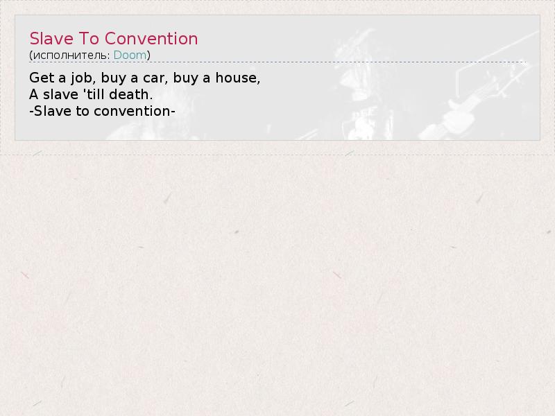 А как ты думаешь, о чем песня "Slave To Convention" ?