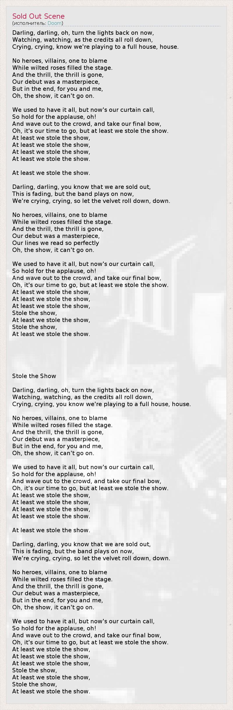 А как ты думаешь, о чем песня "Sold Out Scene" ?