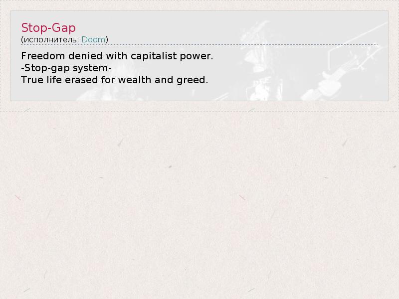 А как ты думаешь, о чем песня "Stop-Gap" ?
