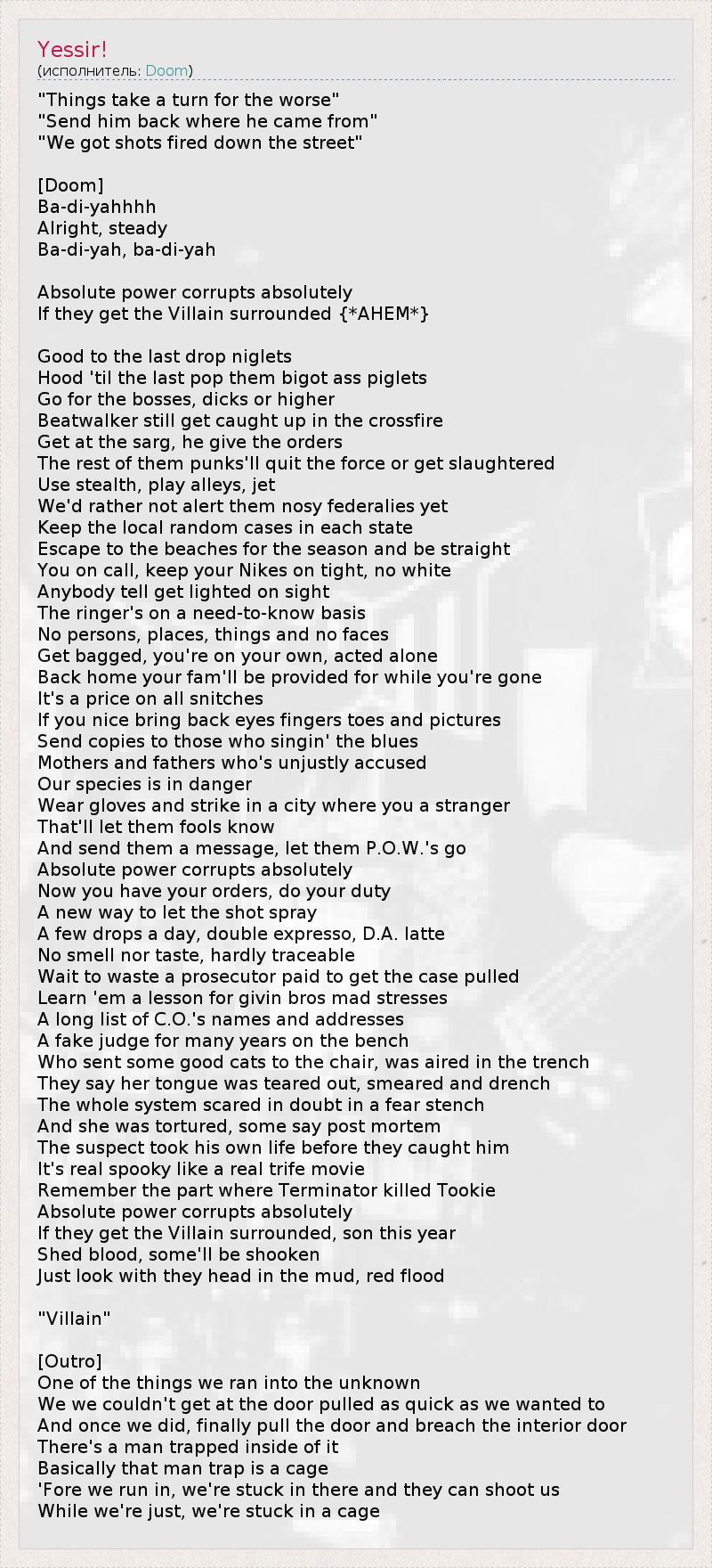 Это интересно:1) Doom — краст-панк группа из Бирмингема, Великобритания (1987 - 2005)2) Американский хип-хоп исполнитель Daniel Dumile (MF DOOM / DOOM / Viktor Vaughn / King Geedorah / Metal Fingers). того, кто прячется за маской, зовут Daniel Dumile. 3) группа из Токио, Япония, исполняющая Avant-Garde / Thrash Metal1) Сначала назывались The Subverters, состав выглядел так: Jon Pickering (бас/вокал), Brian Talbot (гитара) и Jason Hodges (ударные). Когда... продолжение