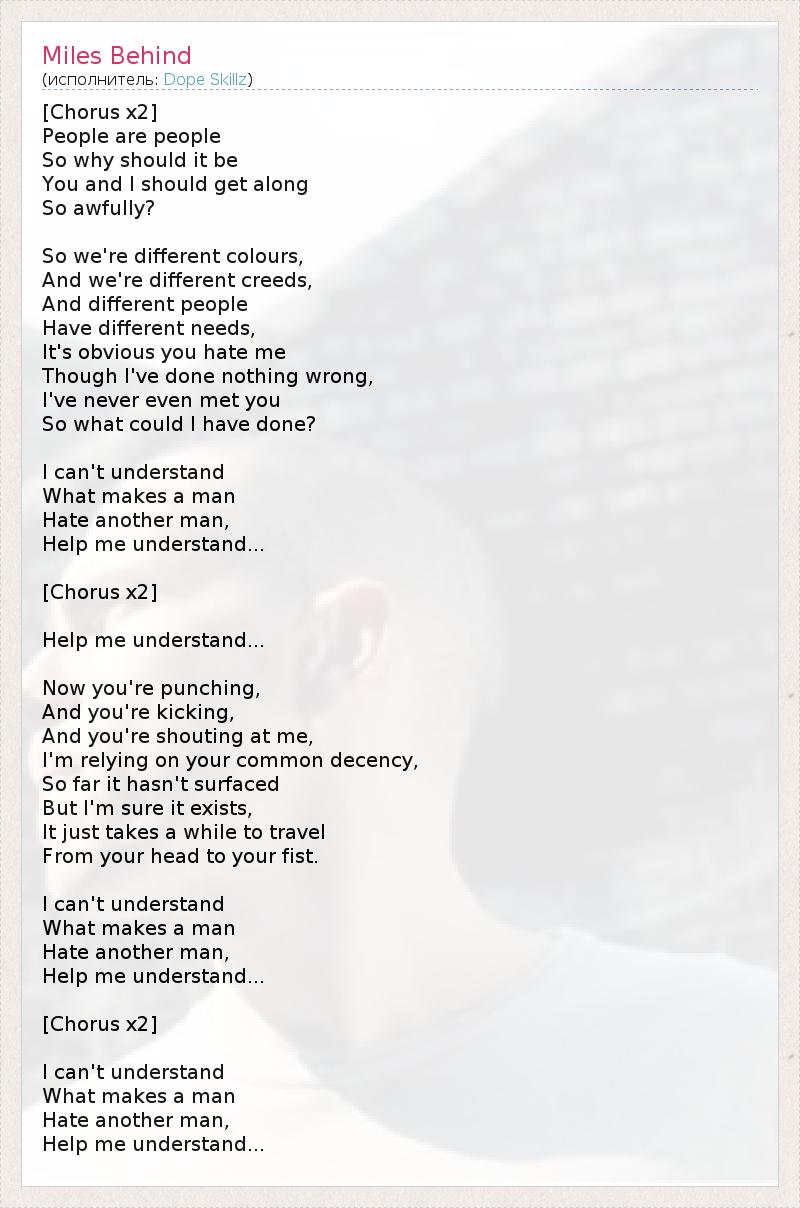 А как ты думаешь, о чем песня "Miles Behind" ?