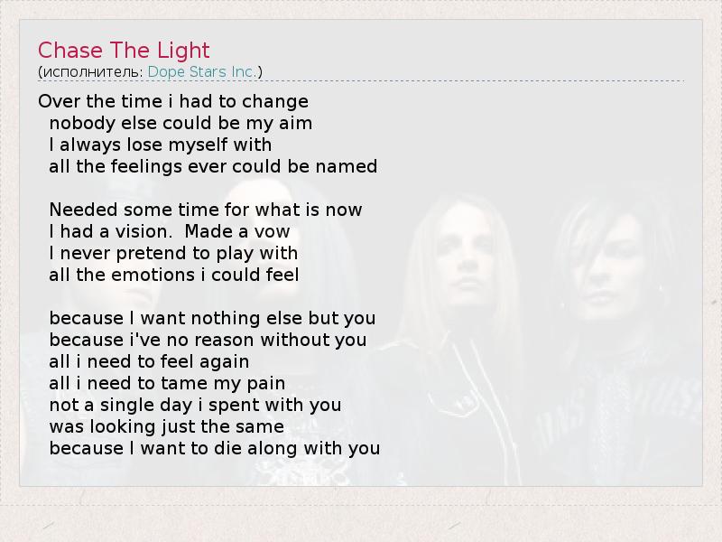 А как ты думаешь, о чем песня "Chase The Light" ?