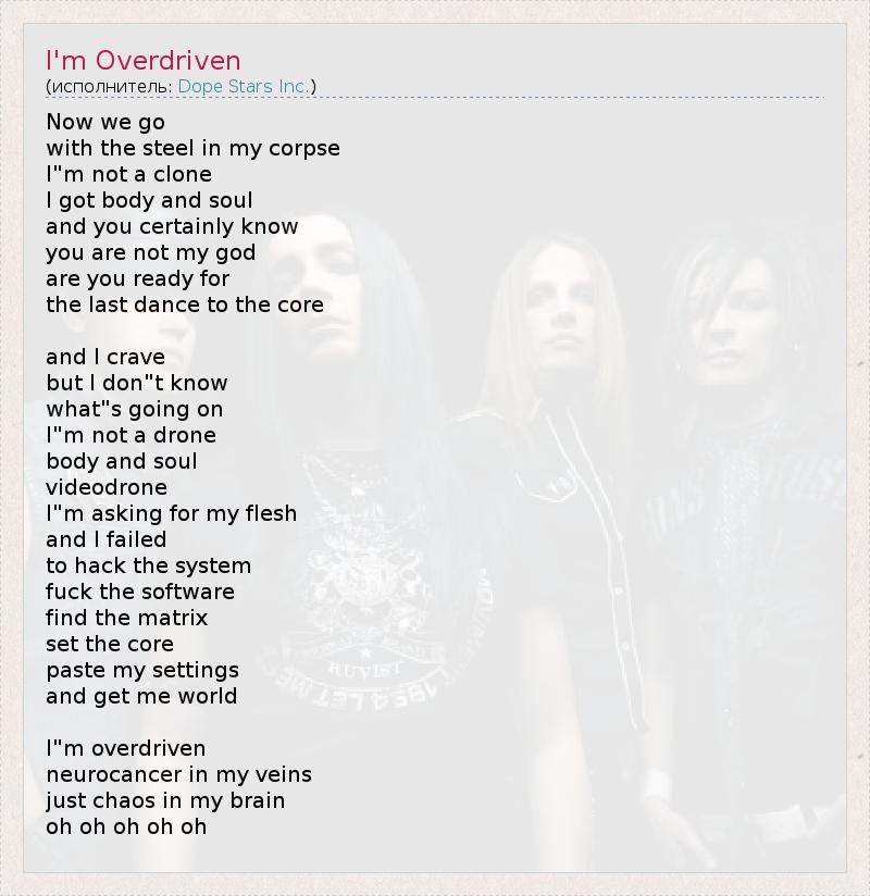 А как ты думаешь, о чем песня "I'm Overdriven" ?