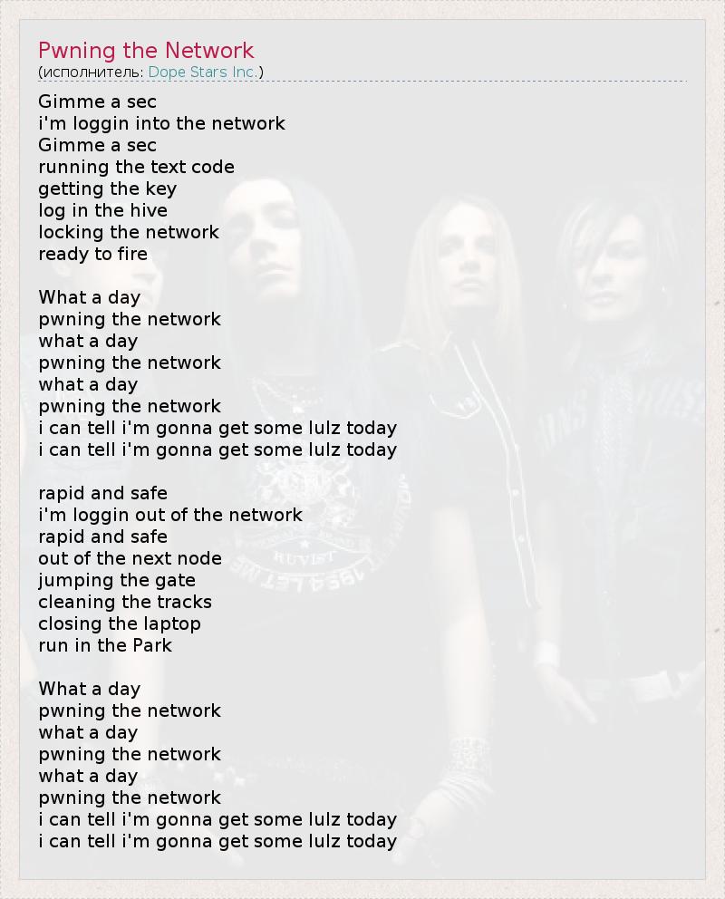 А как ты думаешь, о чем песня "Pwning the Network" ?