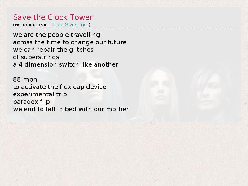 А как ты думаешь, о чем песня "Save the Clock Tower" ?