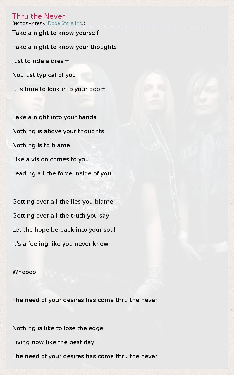А как ты думаешь, о чем песня "Thru the Never" ?