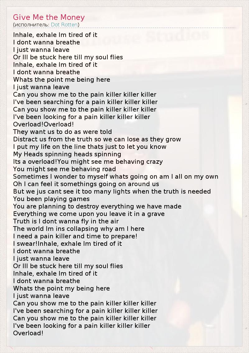 А как ты думаешь, о чем песня "Give Me the Money" ?