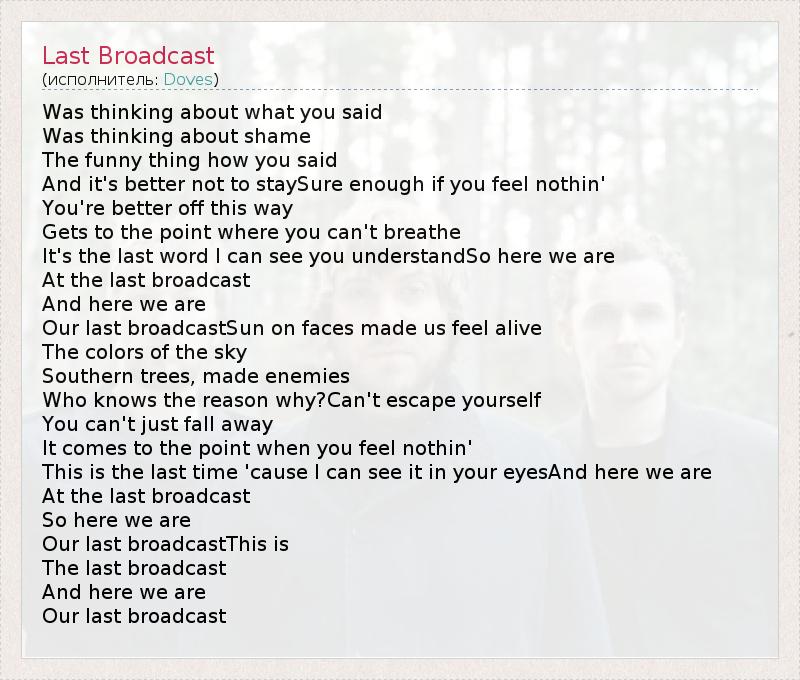 А как ты думаешь, о чем песня "Last Broadcast" ?