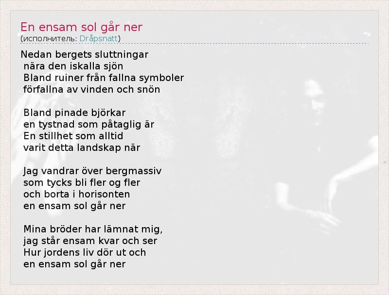 А как ты думаешь, о чем песня "En ensam sol går ner" ?