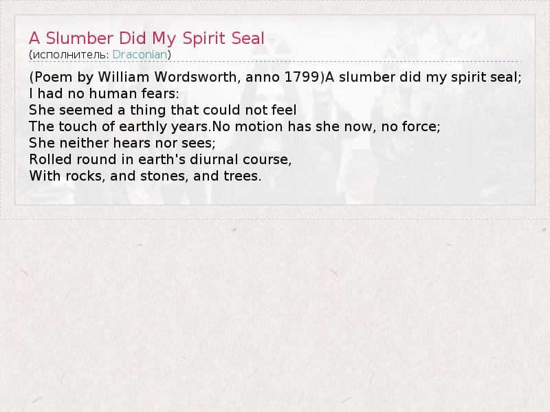 А как ты думаешь, о чем песня "A Slumber Did My Spirit Seal" ?