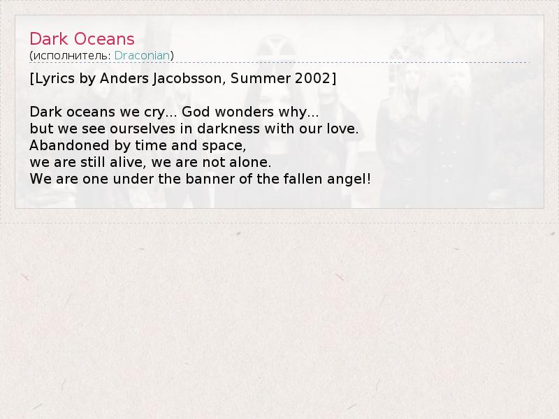 А как ты думаешь, о чем песня "Dark Oceans" ?