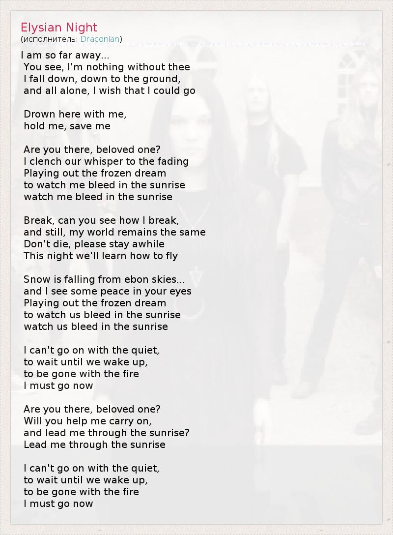 А как ты думаешь, о чем песня "Elysian Night" ?