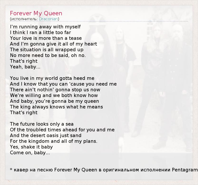 А как ты думаешь, о чем песня "Forever My Queen" ?