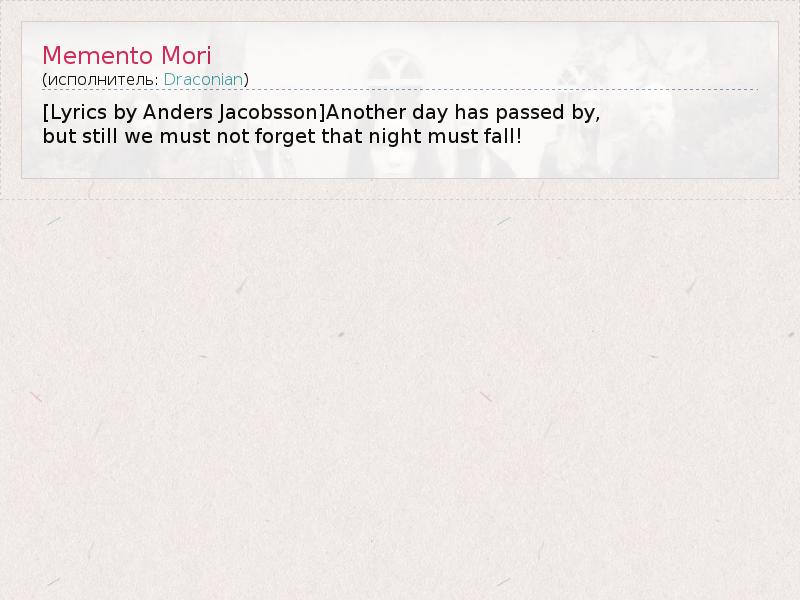 А как ты думаешь, о чем песня "Memento Mori" ?