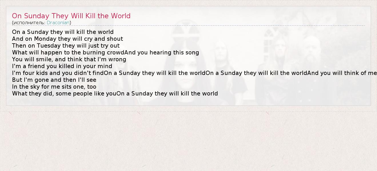 ГлавнаяИсполнителиDraconianOn Sunday They Will Kill the World