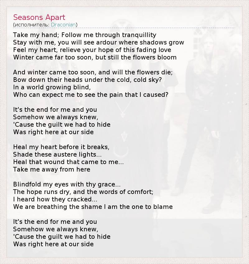 А как ты думаешь, о чем песня "Seasons Apart" ?