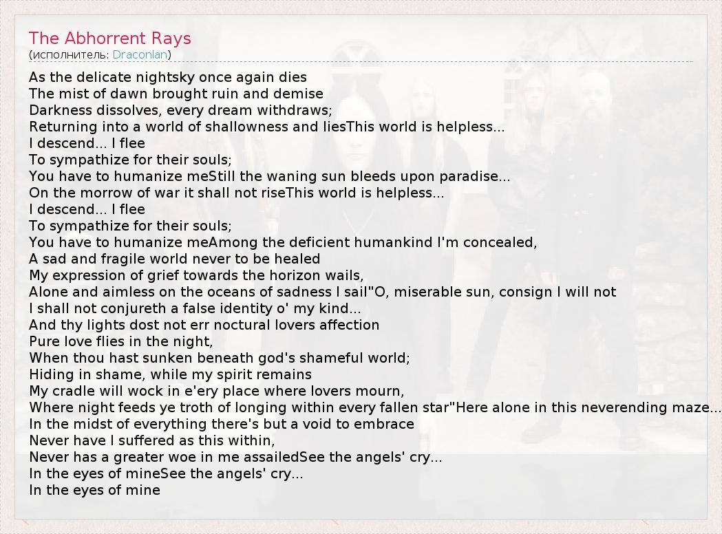 А как ты думаешь, о чем песня "The Abhorrent Rays" ?