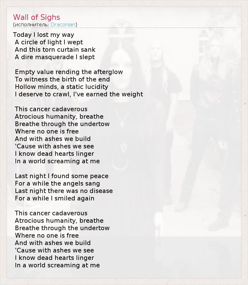 А как ты думаешь, о чем песня "Wall of Sighs" ?