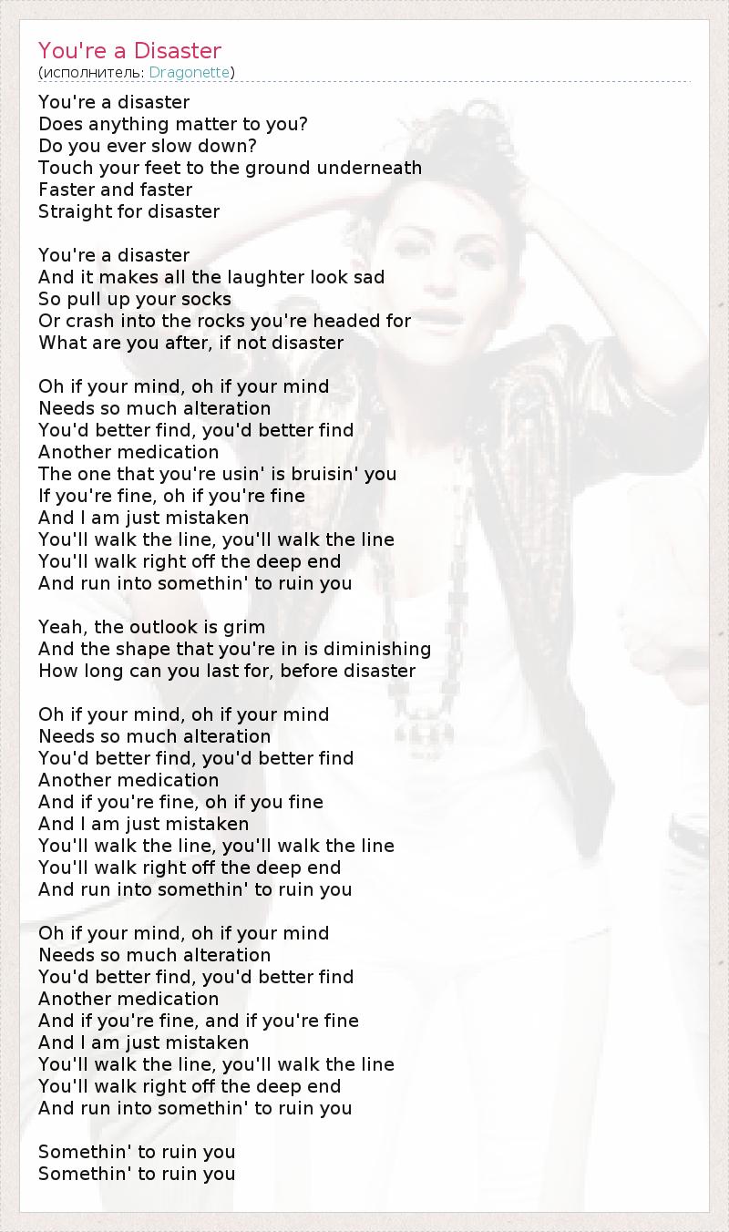 А как ты думаешь, о чем песня "You're a Disaster" ?