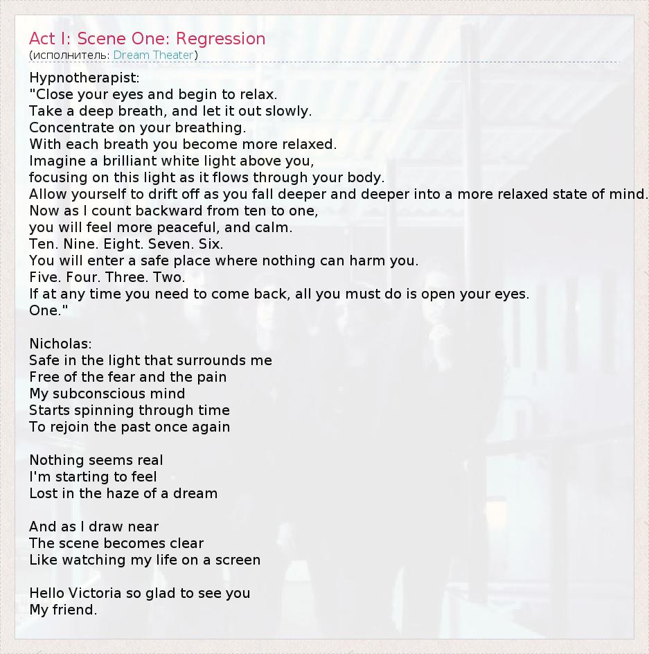 А как ты думаешь, о чем песня "Act I: Scene One: Regression" ?