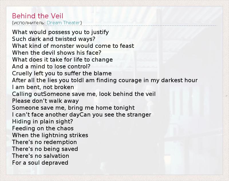 А как ты думаешь, о чем песня "Behind the Veil" ?