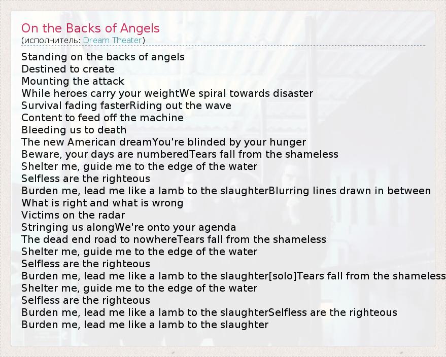 А как ты думаешь, о чем песня "On the Backs of Angels" ?