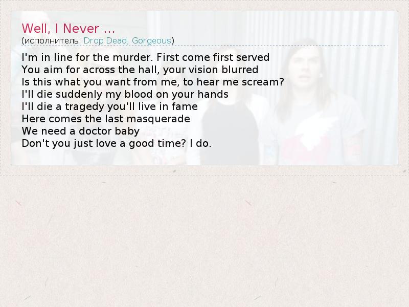 А как ты думаешь, о чем песня "Well, I Never ..." ?